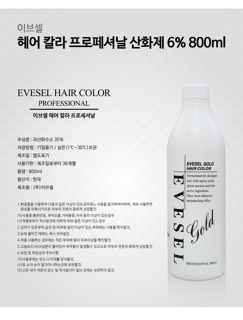 [이브셀] 이브셀 헤어 칼라 프로페셔날 산화제 6% 800ml