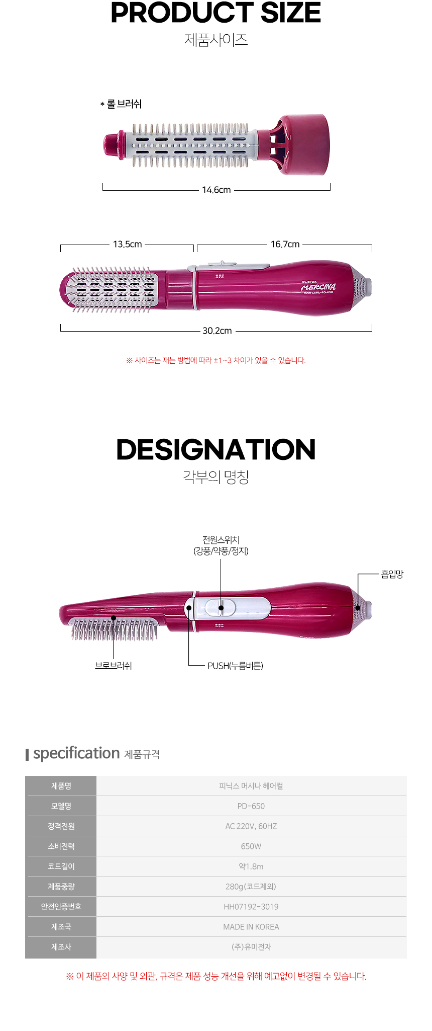 [피닉스] 머시나 헤어컬(빗드라이기) PD-650